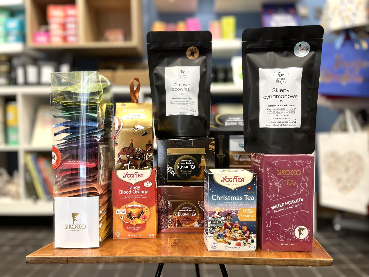 Nie zabrakło też ajurwedyjskich herbat Yogi Tea, w tym rozgrzewających kompozycji z cytryną, imbirem czy pomarańczą. Wszystkie nasze herbaty kupisz w sklepie stacjonarnym Inna Bajka na warszawskim Mokotowie. Wpadnij do nas i podaruj swoim bliskim filiżankę świątecznej magii.